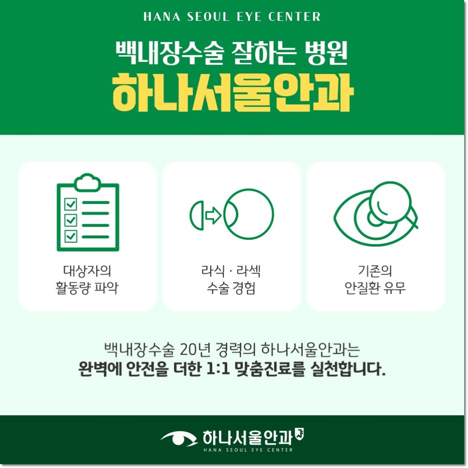 백내장 수술을 잘하는 병원은, 좋은 기기와 제품의 기준치가 아닌 오랜 임상 경험을 통해서 숙련도가 증명된 장소인지를 세밀하게 확인하는 것이 중요합니다. 의료진의 역량은 수술 결과에 큰 영향을 미칠 수 있기 때문에 다양한 경우의 수술 내역과 노하우를 보유하고 있는지 확인하는 것이 필수적이지만.