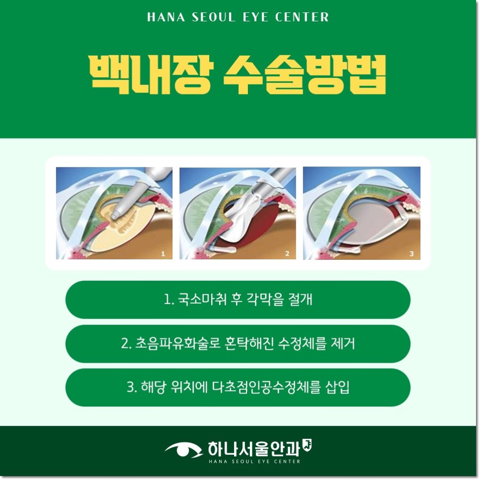 초기에 발견한 백내장은 첫째, 약물치료를 통해 증상의 악화를 예방할 수 있습니다. 그러나 어디까지나 완치는 불가능하며 중기와 말기 이후로 진행된다면 수술적인 개입으로 필요할 수 있습니다. 백내장 수술이 능한 병원에서는 탁한 수정체의 정교한 파쇄를 위해 첨단 장비를 사용함으로써 안전성을 높이고 있습니다. 환자의 눈 상태를 실시간으로 점검하고 정확한 치료 범위를 마이크로 단위로 설정하여 개입하기 때문에 부작용 또는 합병증의 위험을 효과적으로 낮추고 있습니다.