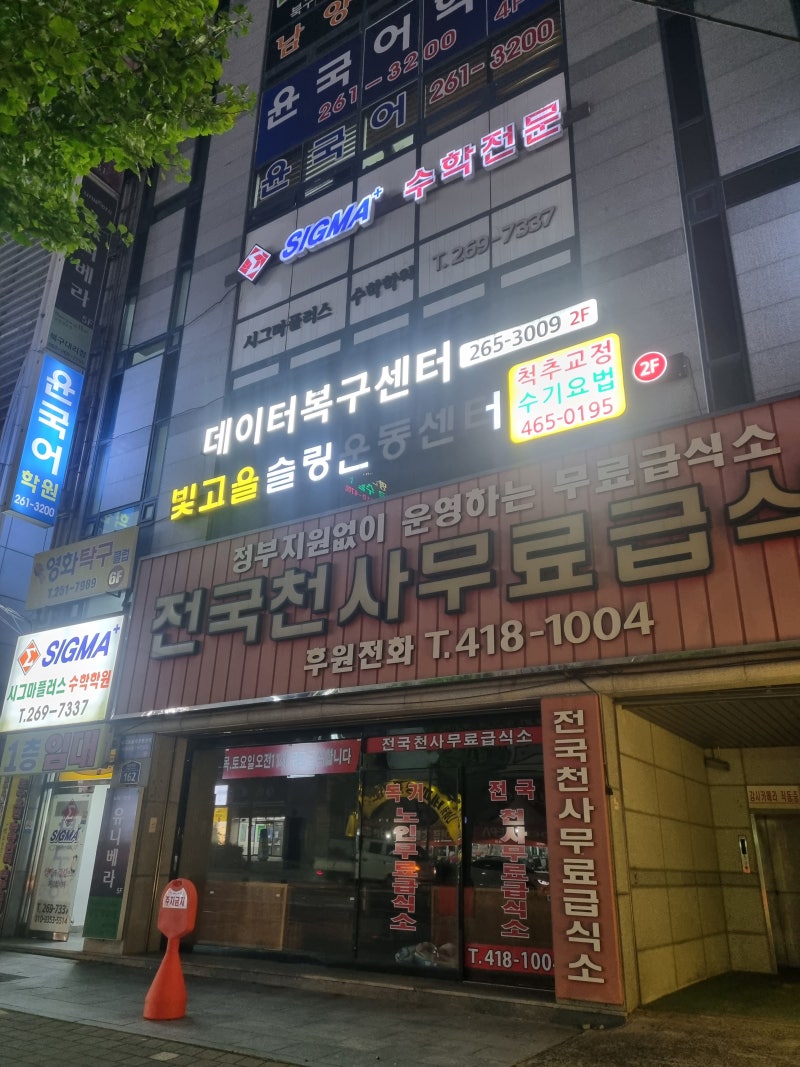 두암동우체국 바로 옆 건물인데 1층에는 예전에 천사무료급식소가 있었고 삼성서비스센터와 LG서비스센터 중간지점에 있었고 근처에 홈플러스와 말바우시장 무등도서관 등이 있고 지하주차장이 있어 지하에 주차할 수 있는데 버튼을 누르시면 문이 열리고 무인엘리베이터에서 내려서 빈 자리에 주차했다가 다시 나가서 계단으로 나가면 다른 건물 내부로 통하는 엘베레토가 있어 2층으로 가시면 됩니다.