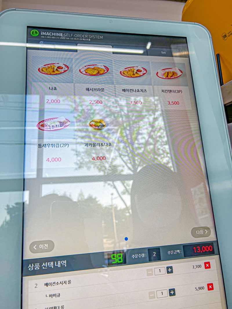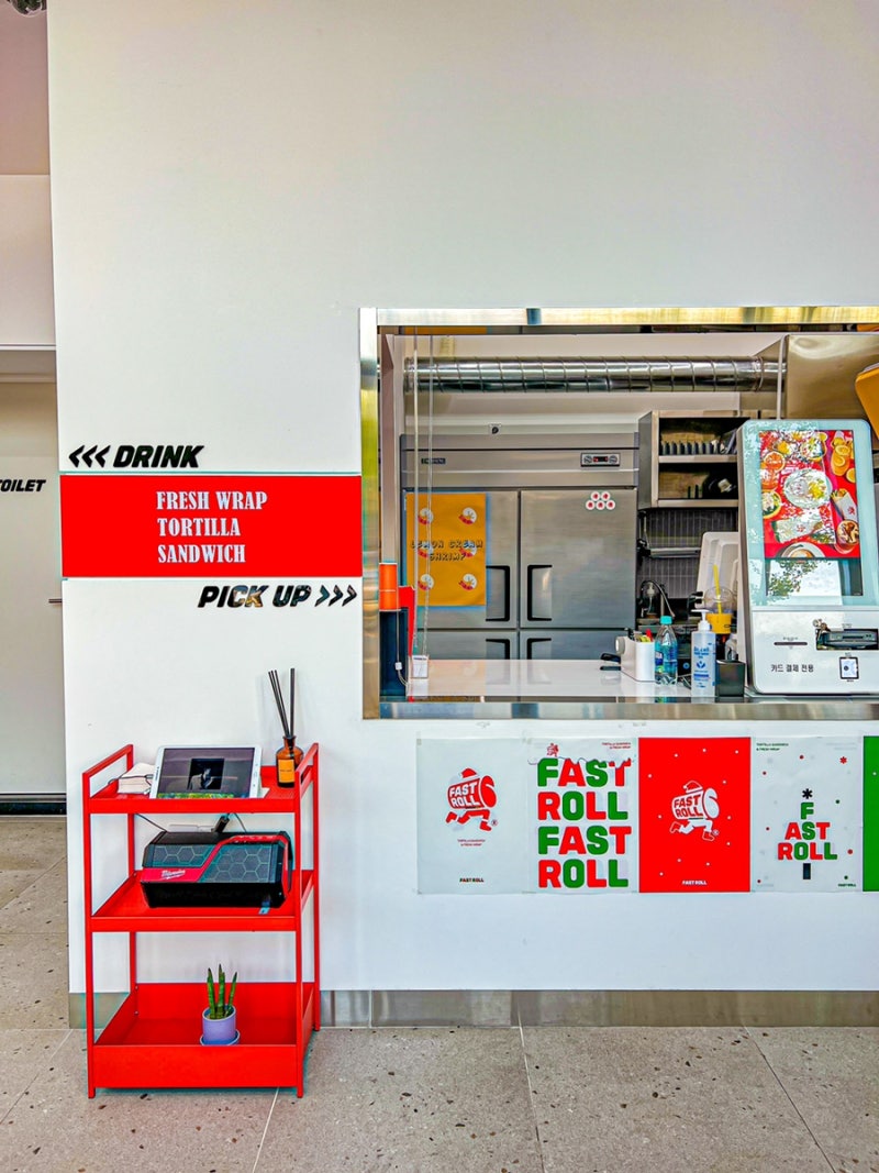 이렇게 키오스크를 이용해서 주문하시면 됩니다.치킨텐더롤과 베이컨소시지롤을 선택했어요~! 소스를 선택할 수 있지만 치킨텐더롤에는 머스타드 베이컨소시지롤에는 바베큐소스를 선택
