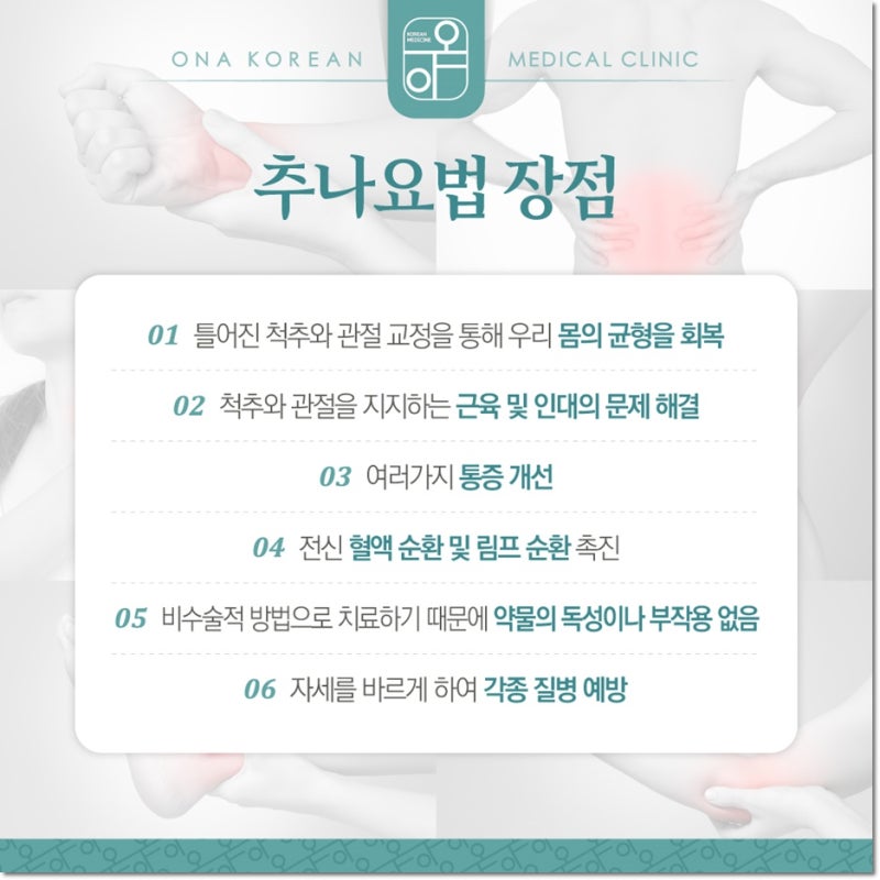 수명이 늘어나면서 혹은 잘못된 자세, 운동 부족, 스트레스 등으로 만성 통증에 시달리는 분들이 늘고 있습니다.오늘은 이렇게 다양한 통증을 겪고 계신 분들께 한 가지 치료 방법을 알아보도록 하겠습니다. 그것은 침 치료입니다!