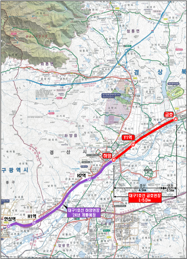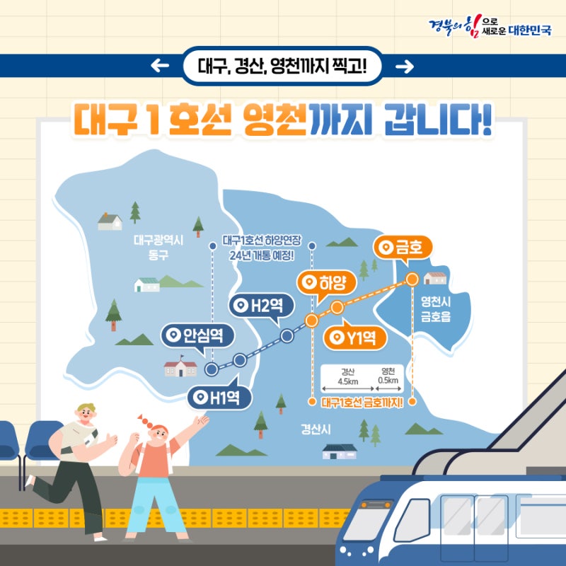 대구1호선 하양~영천 연장사업이 국토교통부 <예비타당성 신청대상사업>으로 선정되었습니다!! 2024년 12월 완공예정인 안심~하동 구간 도시철도 1호선에 이어 대구1호선 하양~영천 연장은 5.0km 구간을 건설하게 되는데, 이번 대구지하철 연장으로 향후 경북에는 어떤 효과가 생길까요?