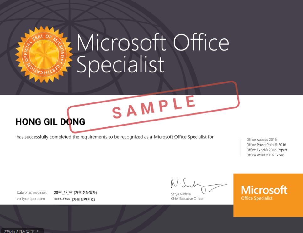 - Word(Expert), Excel(Expert), Powerpoint(Core)는 필수 취득하고, Access(Core), Outlook(Core)은 선택으로 한 과목을 취득하며, 4개 자격증을 취득하면 ★Master 자격증을 얻을 수 있다.