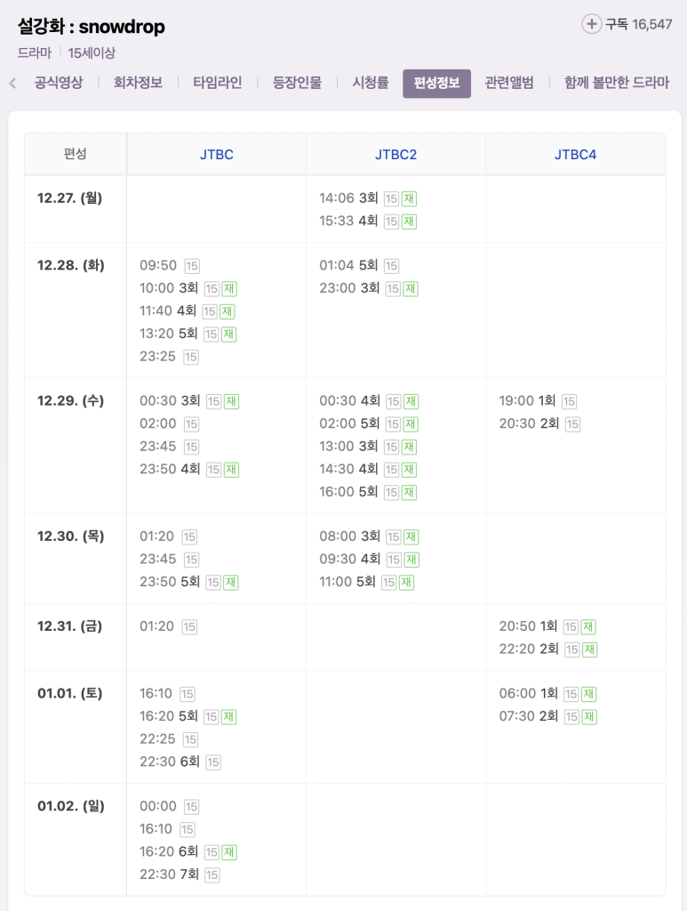 연말 내내 오미크론에 취해 밖에 나갈 수 없다는 것을 알게 된 JTBC는 편성 꼼수를 쓰면서 논란거리인 드라마 눈강화 스노우 드롭에 혈안이 된 느낌이다.