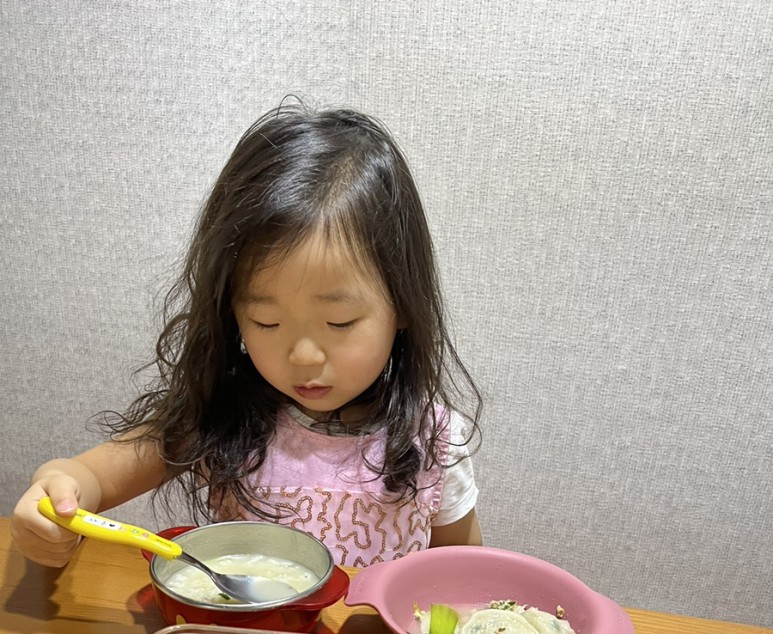 그리고 한 2, 3일 동안은 거의 못 먹은 첫째 아이.