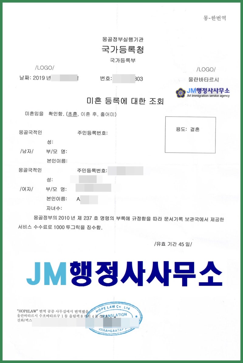 JM행정사사무소 서울특별시 종로구 종로19A동 903호몽골 혼인 신고몽골 국제 결혼몽골 국제 결혼