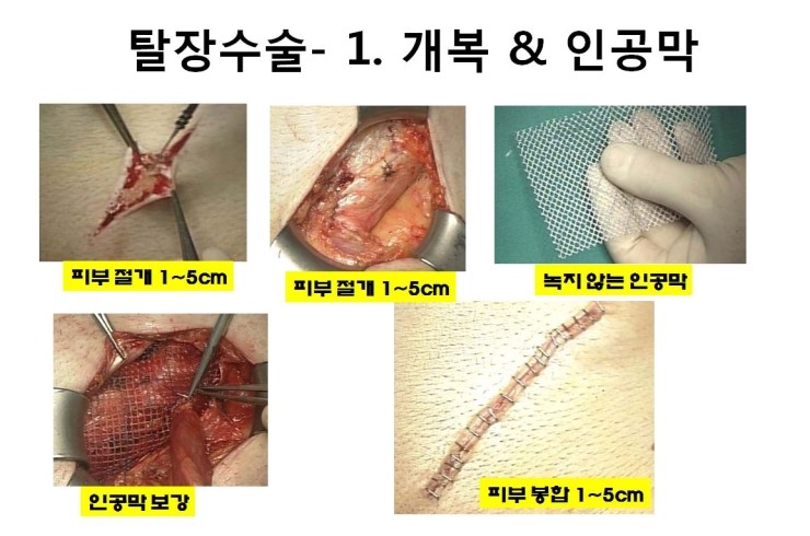 빠른 회복이 가능해 과거 방법으로는 구멍을 바깥쪽에서 보강한 뒤 주위 조직에 꿰매는 방법이 이뤄졌는데, 이 경우 복압이 높아지면서 환부가 당겨지는 느낌이 있어 5~10%에서는 재발이 나타나기도 했습니다. 따라서 현재의 대부분은 단일 통로인 복강경을 통해 시행되고 있습니다. 이것은 신체의 부담 없이 하나의 구멍을 뚫어 내시경을 삽입하고 보강하는 교정술입니다. 안쪽에서 보강하는 방법이기 때문에 바깥에서 보강을 해서 힘을 받치기 어렵고 넓은 부위를 막아야 하는 과거 방법의 단점을 개선한 방안이라고 할 수 있습니다.
