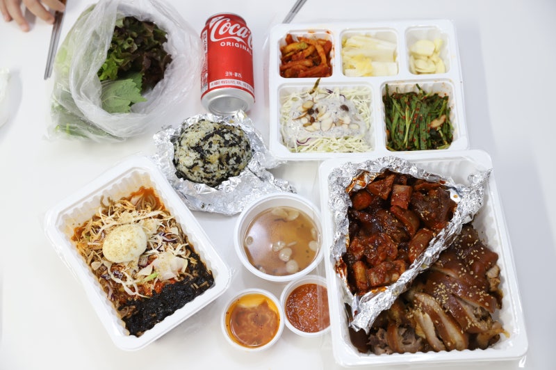 주문한 성신여대족발 황칠족발이 나왔다.둘이서 배부르게 먹을 수 있는 양이었다