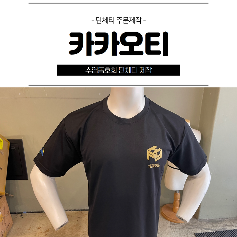 여름이라 수영 동호회 단체티 제작하시는 분들이 정말 많을 것 같아요.카카오 티셔츠는 반팔 티셔츠의 경우 클론 라운드 반팔을 사용하여 통기성이 좋고 얇아서 여름에 입기 좋다고 합니다.얇아서 재질 자체가 물을 잘 흡수하지 않아서 수영장이나 계곡에서 입으면 좋죠?