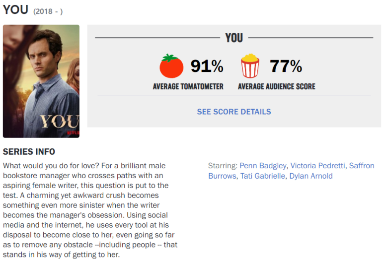최근 들어 완전히 빠져버린 미드가 있다.넷플릭스 오리지널 미드 YOU 한국어 제목으로는 ‘너의 모든 것’이다직역해서 ‘너’였으면 아쉬웠을 텐데 잘 골랐을 것 같아.