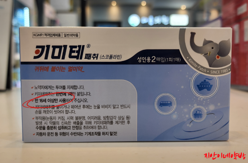 돔페리돈 성분인 크리맥액, 멕시론액은 멀미를 억제한다기보다는 멀미로 인한 구토를 억제하는 약!3. 멀미를 예방하는 비약물요법처럼 흔들림이 적은 곳에 앉는다(ex. 차 앞쪽, 기차가 달리는 방향, 비행기 날개 사이, 배 중앙) 정면을 똑바로 보고 멀리 시선을 고정시킨다.이동 중 책이나 휴대전화를 보지 않는다.여행 전 과식이나 과음 없이 기름진 음식, 술, 담배는 피한다.생강은 오심과 구토 예방에 효과적인 것으로 알려져 있으며 생강차는 멀미에 도움이 된다.BBB라고 불리는 혈액뇌장벽을 통과하는 항히스타민제는 평형기관인 전정기관의 흥분을 억제하고 연수의 *CTZ에 과량으로 존재하는 아세틸콜린을 차단함으로써 구토자극의 중추를 감소시키고 멀미를 억제하며 구토를 완화한다. *CTZ(chemoreceptor trigger zone): 화학수용체 자극대, 자극하면 구토하기 쉽게 말하면 항히스타민제는 뇌의 감각을 적절히 차단하여 멀미 예방을 한다.항히스타민제의 이상반응으로는 구갈, 몽롱한 기분, 가슴 두근거림 등이 있으며 녹내장 환자나 전립선 비대, 호흡기 질환자는 복용에 주의해야 한다. 수유부는 약물이 모유로 이행하기 때문에 사용 금지.② 부교감 신경 차단제: 스코포아민(Scopolamine) 무스칼린 수용체 길항제로서의 항콜린제, 스코포아민은 구토 반사 중추를 억제한다. 멀미의 최종 증상인 오심이나 구토에 대해 반응하기보다는 멀미 예방제로 더 효과적이다.
