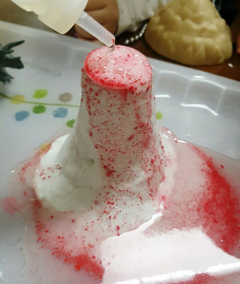 ㅁ 화산폭발 준비물 – 과학특공대 화산폭발 실험키트! – 베이킹소다 – 식초(+빨간물감) – 나무젓가락