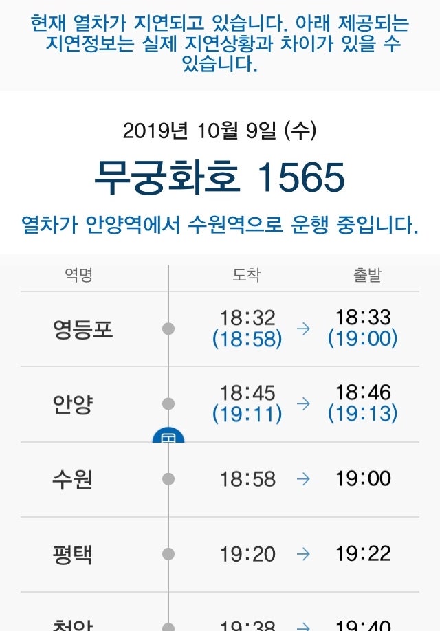 출발 시간이 됐는데 계속 늦었는데 30분 정도 지나서 출발해서 서행하면서 각 정류장마다 30분~1시간씩 정차하면서 무궁화호 탈선 사고로 인해 지연되고 있다며 제시간에 도착할 수 있도록 최선을 다하겠다는 안내방송만 해주셨습니다. 언제쯤 도착할 것 같다, 이런 내용은 전혀 없었어요.