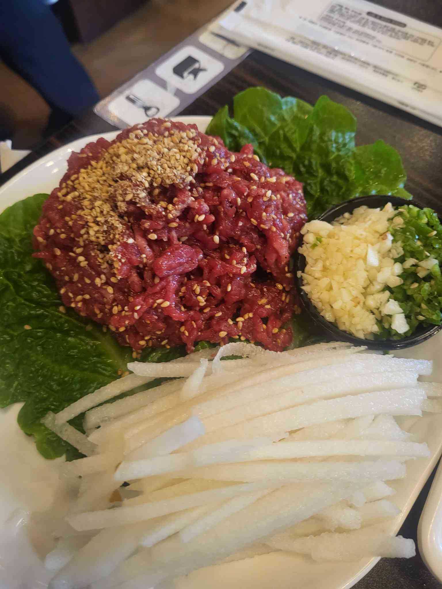 영주 가흥동 맛집 돼지코는 반 갈비살과 황태찜이 메인 메뉴인데 다수결로 황태 코다리찜을 정해 먹기로 해서 주문했습니다.~~ 황태 코다리찜먹어보니까양념이너무맛있고 돼지갈비찜도맛있을것같아서그자리에서는배불러서못먹을것같아서포장까지했잖아요~!! 육회도있었는데이번에는술한잔마실때안주로주문해서먹으려고…다시 갈게요!!