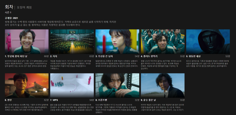 어떤 종류의 게임이 있는지도 얘기하면 당연히 스포일러 무궁화꽃이 피었습니다는 선공개 되었기 때문에 그 게임이 첫 아이 때 많이 한 게임이기 때문에 20-30대는 처음 보는 게임도 많을 것이다.역시 잘 모르고 본 게 주효했다, 너무 재밌었다 한번 보고 계속 봐야겠다에피소드 1개 당의 게임이 1개 정도가 되므로, 에피소드는 계속 된다.