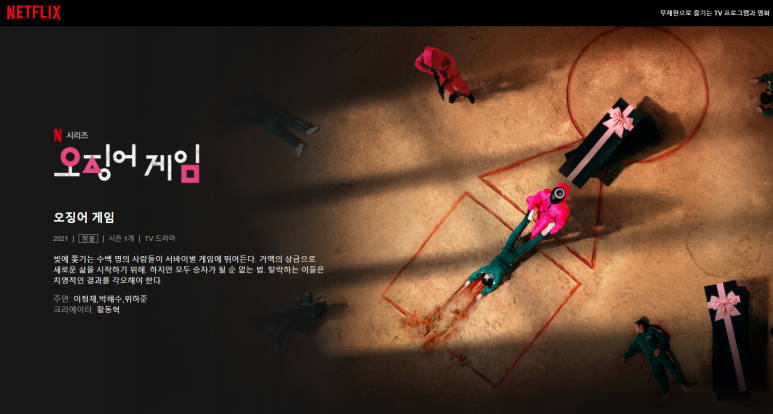 ▲오징어 게임=어릴 때 오징어가 이상이라고 생각했던 이 게임이 이렇게 화제가 될 줄 몰랐어.그것도 넷플릭스 미니시리즈 이름으로금요일 밤 단숨에 하는 건 좋았어 시간 금방 가네에피소드는 거의 1시간 정도였지만 드라마 앞뒤를 모두 제외하면 4시간 정도면 충분히 볼 수 있다.밤 10시 반부터 시작해 오전 2까지 거의 3시간 반을 집중해서 본 것 같다.
