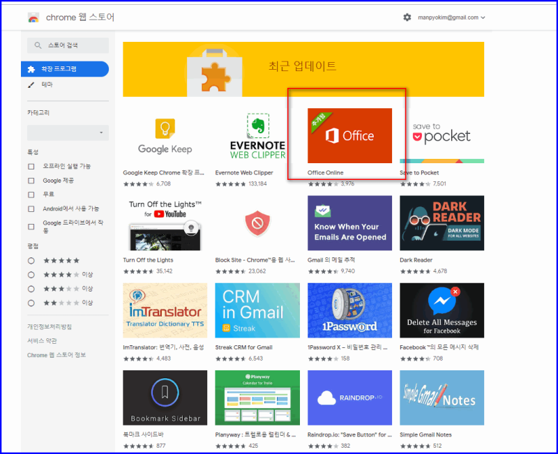 확장 프로그램을 눌러봐도 소용없어요. 하단을 봐주세요.크롬 웹사이트 열기를 클릭하세요.크롬 웹사이트 열기를 선택하면 위의 캡처 이미지와 같은 화면이 나타납니다.나는 office Online을 선택하여 설치해 보았습니다.크롬 웹사이트 열기를 선택하면 위의 캡처 이미지와 같은 화면이 나타납니다.나는 office Online을 선택하여 설치해 보았습니다.office가 설치된 것이 보입니다.MICSoft 계정로그인 해볼게요.로그인 해볼게요.로그인 해볼게요.설치는 된 것 같은데 유료로 구매해야 할 것 같아요.사무실은 무료가 아닌 것 같아요.설치는 된 것 같은데 유료로 구매해야 할 것 같아요.사무실은 무료가 아닌 것 같아요.게임 웹 등 수백 개의 프로그램을 설치할 수 있고 쉽게 삭제할 수 있습니다.저는 어떤 것을 설치해야 할지 잘 모르겠어요. 놓고 연구해 봐야 해요.Google Chrome Web 스토어 확장 프로그램 URL 주소는 다음과 같습니다.https://chrome.google.com/webstore/category/extensions?hl=ko크롬웹스토어브라우저에새로운기능을추가하여인터넷탐색환경을맞춤할수있는소규모프로그램입니다.chrome.google.com크롬웹스토어브라우저에새로운기능을추가하여인터넷탐색환경을맞춤할수있는소규모프로그램입니다.chrome.google.com크롬웹스토어브라우저에새로운기능을추가하여인터넷탐색환경을맞춤할수있는소규모프로그램입니다.chrome.google.com크롬웹스토어브라우저에새로운기능을추가하여인터넷탐색환경을맞춤할수있는소규모프로그램입니다.chrome.google.com크롬웹스토어브라우저에새로운기능을추가하여인터넷탐색환경을맞춤할수있는소규모프로그램입니다.chrome.google.com