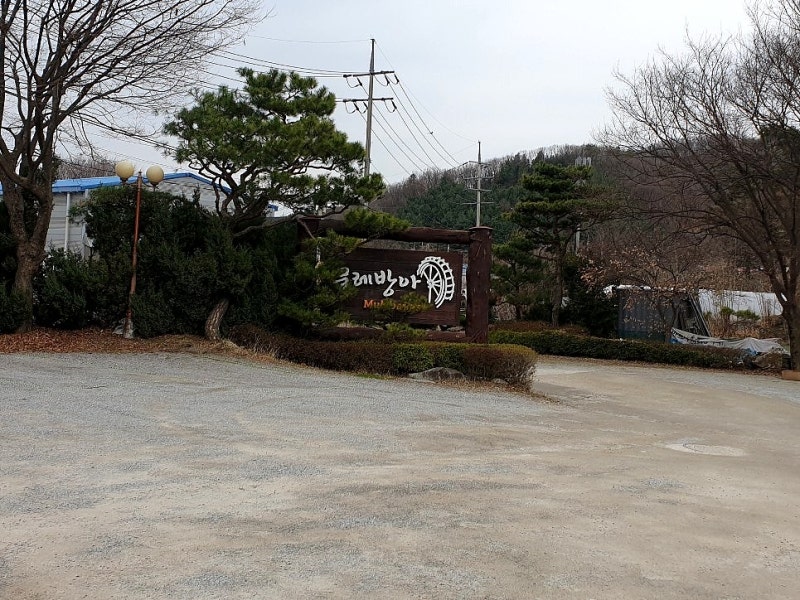 넓은 마당 주차장에 차를 세우고 이 집의 시그니처 물레방아를 지나