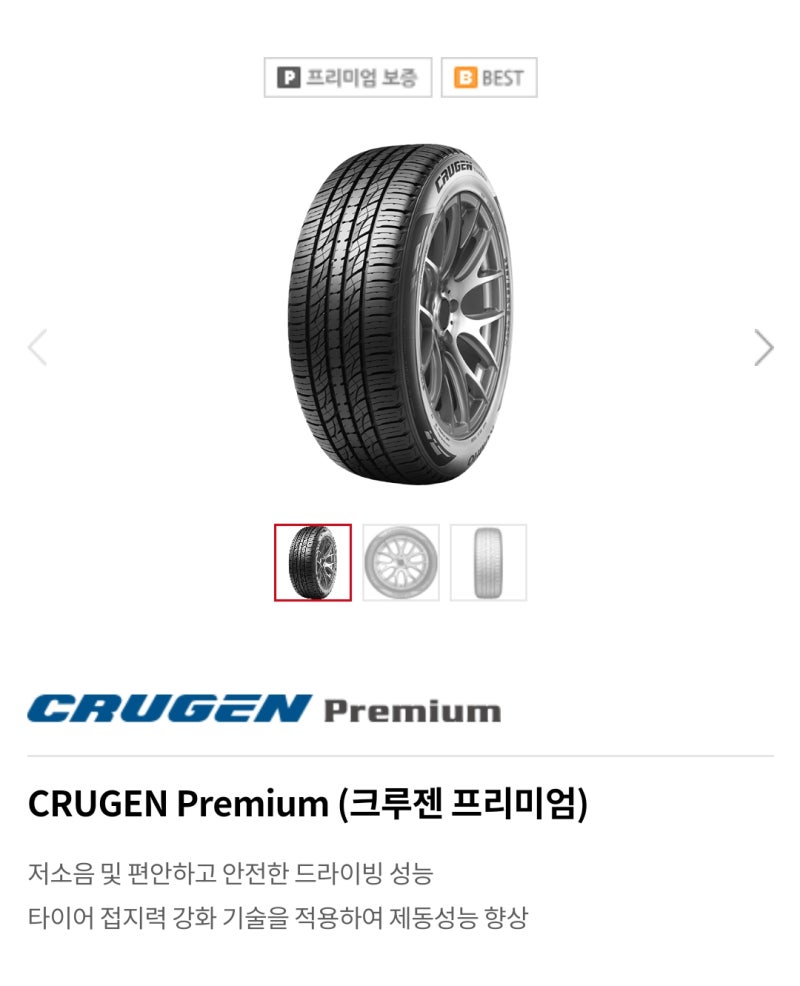 고급형금호:#크루젠프리미엄(KL33)한국:#타이나프로HL3넥센:#로디언GTX최고급형 다음으로 최고의 가성비를 생각하신다면 국내 3사의 고급형 제품도 좋은 선택지가 될 것 같습니다. 세 제품에 대한 비교가 자세하게 리뷰된 채널이 없어서 자료 업로드는 못했지만 세 모델 모두 많은 드라이버들이 선택하고 있는 제품입니다. 특히 금호타이어 크루젠 프리미엄은 기존 최고급 라인에서 신제품이 출시되면서 고급 라인의 위치가 바뀌었지만 여전히 높은 평가를 받고 있네요. ^^운행 시 #마일리지성능 및 #제동력 #승차감까지 생각하신다면 개인추천으로 크루젠 프리미엄, 다이너프로HL 두가지 제품을 추천드립니다. 그 중 가성비를 중요시한다면 넥센타이어 GTX를 생각해보세요. 특히 금호타이어 크루젠 프리미엄은 승차감, 제동력까지 갖췄는데 마일리지가 엄청나요.(웃음)
