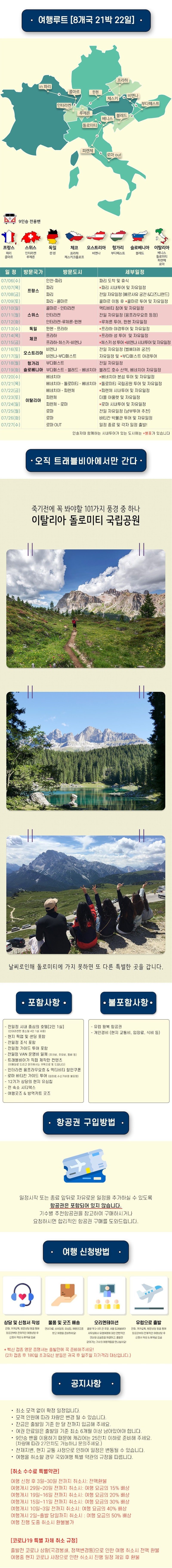 VAN을 타고 이동하면서 인솔자가 마이크를 착용하고 도시의 역사와 에피소드에 대해 이야기합니다. 원하시면 전 도시를 가이드 투어하거나 전 도시 자유 일정이 가능합니다! 트래블비아 전 인솔자분들은 해외여행 인솔자 자격증을 소지하고 있는 전문가분들입니다. 특히 트래블비아 인솔자가 직접 제작한 가이드 콘텐츠(맛집, 쇼핑, 꿀칩 리스트)를 제공하여 심신이 편안한 여행이 가능합니다!평생 기억에 남는 여행!유럽 세미패키지 여행에서 이렇게 만난 것도 인연 아닐까요~?우리의 친해지는 과정을 인솔자가 영상으로 찍어 편집하여 잊지 못할 추억의 선물을 드립니다!이탈리아 스위스 드로미티 국립공원을 포함한 여행!이번 여행 패키지에서 제가 가장 흥미로웠던 일정 코스입니다! 이탈리아의 스위스라고 불리는 드로미티 국립공원을 방문한대요.다른 여행사에서는 절대 볼 수 없는 아주 특별한 일정입니다.알프스 중 최고라는 이탈리아 드로미티 국립공원 VAN을 타지 않고는 절대 갈 수 없는 일정이라 추천드려요~! (겨울상품에는 포함되어 있지 않습니다) :)유럽 여행은 아름다운 풍경을 보러 가기도 하지만 스토리텔링이 있는 여행이라 알수록 더 잘 보이는 것이 유럽입니다. 🙂 혼자 떠나는 것도 좋지만 젊은 감각의 인솔자님과 함께 기차시간, 버스시간에 쫓기지 않고 소중한 인연과 더 특별한 추억을 만들 수 있는 소수정예 VAN 투어를 추천드리고 싶어요!특별히 무료로 포함된 서비스 몇 가지를 소개합니다! 인천공항에서 집으로 돌아가는 것도 어렵지만 유럽에서는 더 어려워요~! 곧 공항픽업, 샌딩을 무료로 도와드리겠습니다. 휴대 전화 요금 폭탄 걱정 없이 현지 SIM 카드도 포함되어 있습니다.세계 3대 투어 중 하나인 바티칸 투어가 무료로 포함되어 있습니다! 꼭 투어를 들어야 바티칸이라는 작은 나라를 제대로 느낄 수 있어요. 게다가 여행 신청 시 제공되는 굿즈도 차별화되어 있다고 하네요. 신청자의 면역을 위한 방역 키트 상품을 제공한다고 합니다. (프로폴리스, 비타민, 휴대폰 액정클리너 등으로 구성)올 가을 23기 출발 일정은 2년 만에 재개되는 세계 최고의 맥주 축제 옥토버페스트까지 만나보실 수 있습니다!24기 10월 출발은 가을의 절정에 있는 유럽을 즐길 수 있습니다 :)23기: 9월 15일 출발(독일 뮌헨 옥토버 페스티벌 포함) 24기: 10월 11일 출발 25기: 11월 15일 출발 26기: 12월 8일 출발(크리스마스 마켓 포함) 최대 20만원 할인 이벤트도 진행 중이니 놓치지 마세요!1) 90일전 예약시 20만원 할인2) 60일전 예약시 10만원 할인3) 친구와 함께 예약시 물론 20만원 할인23기 상세일정은 위 표를 참고해주세요!인솔자님 중 이성열 인솔자님은 유튜브 채널까지 운영하고 있습니다! 거리에서 버스킹과 에피소드, 유럽 팁 등을 실감나게 영상으로 볼 수도 있습니다!유튜브 채널 VIA바로가기(클릭) 상품페이지바로가기(클릭) 네이버 카페바로가기(클릭) 직접 다녀온 고객 인터뷰 영상바로가기(클릭)풍경사진출처 growsonny 여행인물사진출처 트래블VIA 아래 영상은 요즘 매너리즘에 빠져 노래도 불러주지 않는 곤돌라 아저씨를 대신해 손님들에게 부른 지금 이 순간입니다! :)이 투고는 원고의 서포트료를 받고 작성되었습니다. 😀
