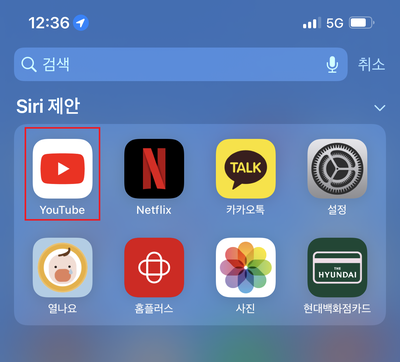우선 핸드폰으로 유튜브 앱을 실행하겠습니다.