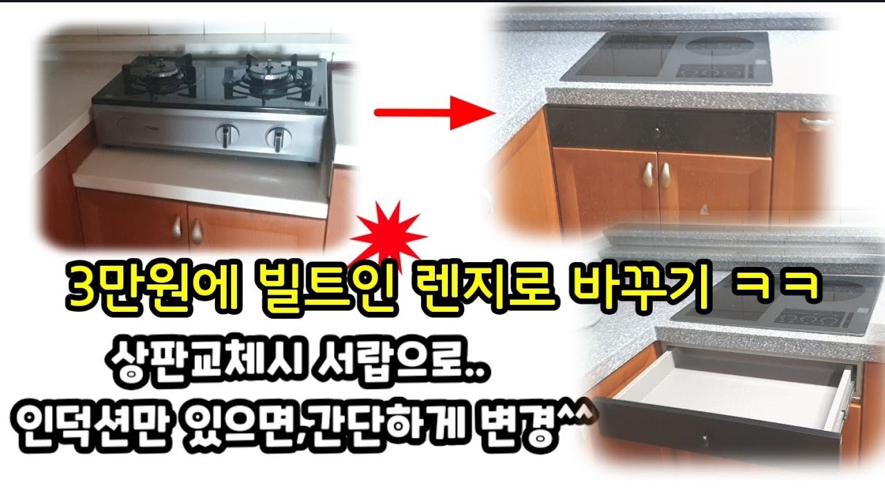 주방 싱크대 위에 인덕션이 빌트인 되어 있습니다.인조 대리석 상판에 인덕션 구멍 뚫기 크기에 맞게 작업이 되어 있습니다.싱크대 상판 인덕션 구멍 크기는 한번 뚫어놓으면 일반인이 변경하기에는 무리가 있습니다.
