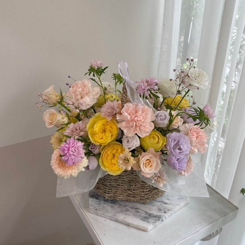 수입 알스트로메리아 공작 나비 웨딩 요요 스프레이 로즈 프리지아 영 크림 미니 국화 안개꽃 머틀 허브 라글러스 크림 레몬 미니 거베라