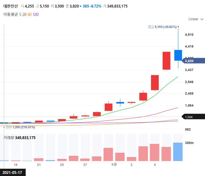2월 23일 러시아 전쟁으로 인한 LNG 해상운송 급증 기대로 하루에 20% 상승했던 대우조선해양이 저 같은 경우 대우조선해양이라는 주식을 샀는데 저는 2022년 하반기 빨라야 2022년 3분기경 출혈경쟁 이후 수주한 물량의 잔금을 받는 시점부터 실적이 좋아질 것 같아서 인수했습니다. 미리 선점하려고 했거든요.