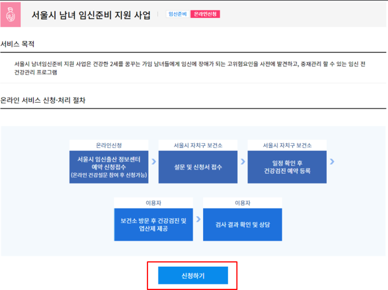 서울시 남녀 임신준비지원사업 신청방법 및 리뷰 임신준비 전에 보건소에서 무료로 받을 수 있는 검사가 있다고 하는데 올해 알고 신청했습니다.