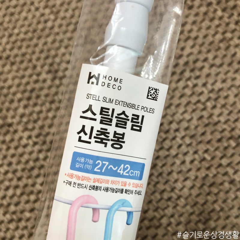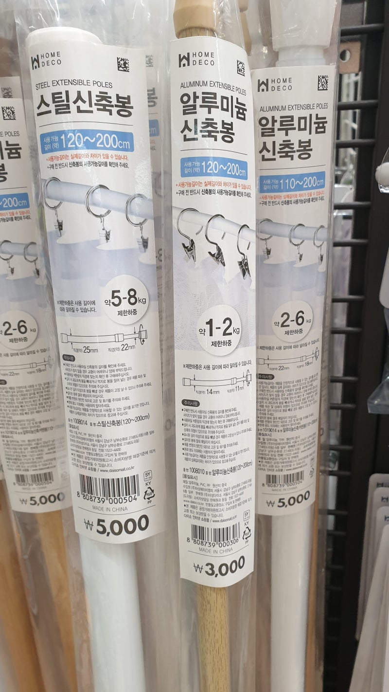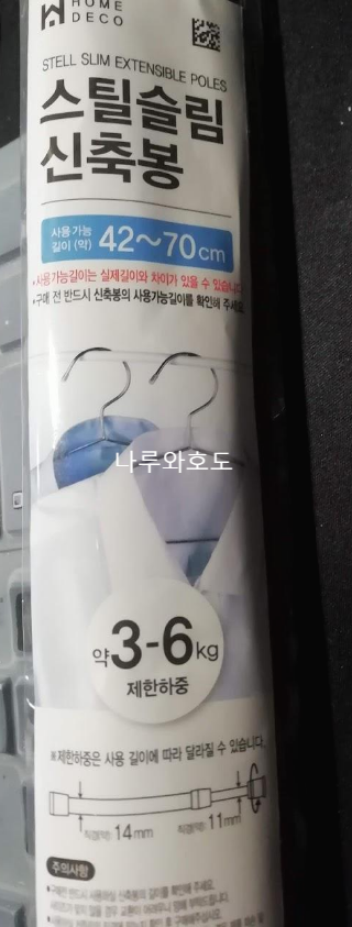 다이소 스틸 압축봉 신축봉 포장, 바로 압축봉 신축봉이 있다는 사실이었어요!생각나서 바로 가서 구매해왔어요.제한 하중이 1kg이기 때문에 무거운 옷 등을 걸치기에는 적당하지 않습니다.하지만 저는 가벼운 휴양지풍의 문을 걸어놓기 때문에 전혀 문제가 되지 않습니다.참고로 신축봉도 사이즈가 다양하기 때문에 용도에 맞게 잘 골라야 합니다.