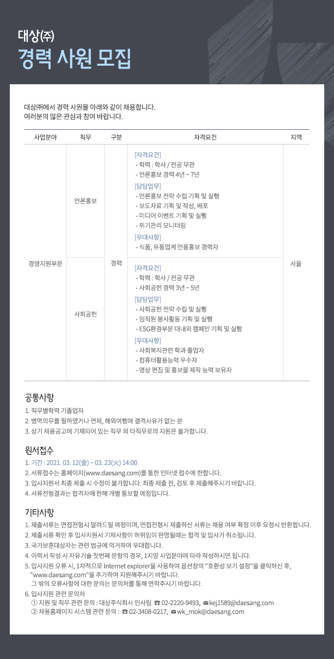 동물권행동 카라에서 홍보영역을 담당해주실 경력활동가를 모집합니다. 시민단체 활동에 대한 깊은 이해를 가지고 카라의 가치를 공유하고 동물권 증진을 위해 일해 주시는 분들의 지원을 기다립니다.