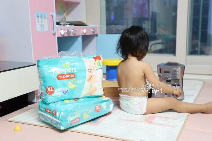 낮/밤 24시간 소윤이와 함께하는 팜파스!아이가 자라면서 기저귀도 그 시기에 맞춰 달라지는 것 같습니다. 서윤이는 요즘 건강한 시기를 보내고 있어 한시도 가만히 자지 못하고 움직이는 덕분에 강력한 흡수력과 샐 염려가 없는 완벽한 기저귀를 찾게 되었습니다.낮에는 활동량이 많아 밤에는 밤새 뒤척이고 소변량이 많아 이것저것 파워 흡수력을 필요로 하는 서윤이에게 딱 맞는 팜파스 베이비 드라이&통면팬츠 두 기저귀 조합은 단연 최고입니다.아이가 통째로 잠들기 시작하면 절실히 느끼는 흡수력의 차이! 밤에 기어서 유목민 생활을 멈추게 해준 팸퍼스 환잠팬츠는 최대 12시간 유지되는 흡수력을 가지고 있기 때문에 밤새 우리 아이의 엉덩이를 짓누르거나 발진이 날까 걱정할 필요가 없습니다.