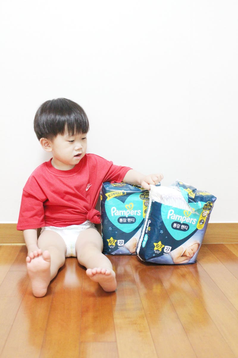 목욕을 하고 자기전에 동침을 위한 의식!! 뽀로로가 그려진 동침팬츠를 입을테니 밤새 잠에서 깨지 말고 편안하게 잠을 자도록 하세요. 팜파스퇴