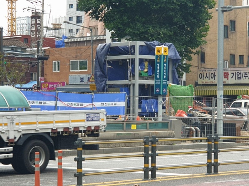 6번 출구로 내려가면 보이는 맞은편 버스정류장이 탑승장소다. 마침 영등포 03번 버스가 왔다.그러나 내리자마자 보이는 2층 투썸 쪽으로 가지 않고 우측 횡단보도를 이용한다.