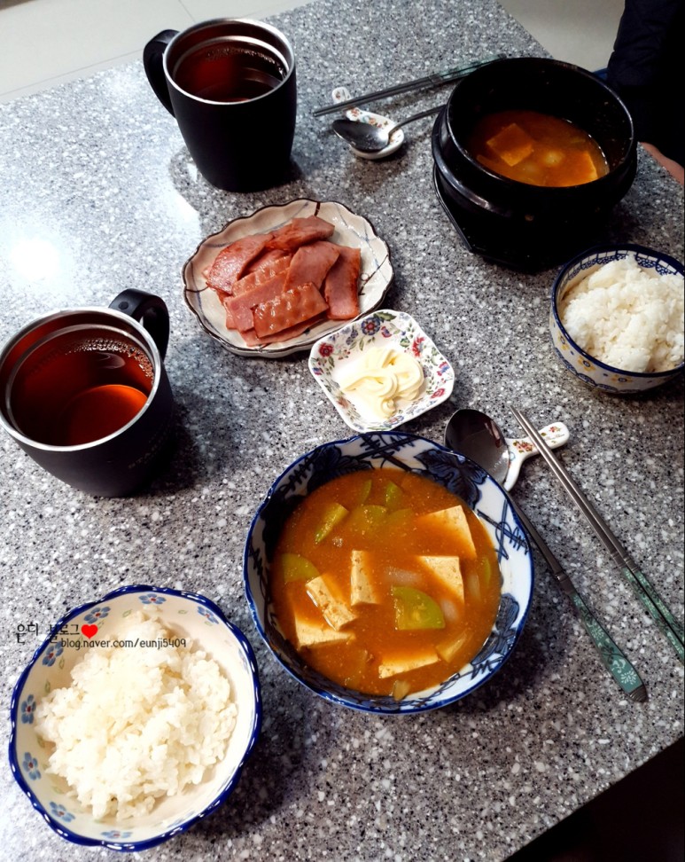 찬물에 부어서 먹은 건 아닌데 밥이랑 찌개를 식혀서 두부를 으깨서 비벼먹었어요^0^
