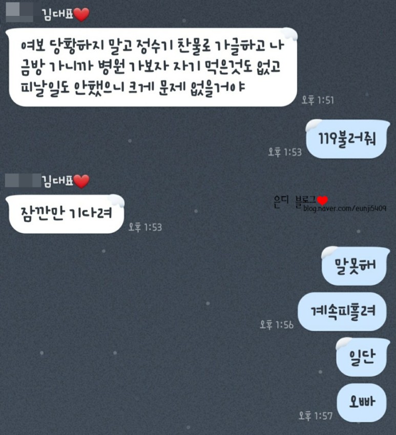 하지만 집에서 출혈이 났다는게 큰 다행이에요! 밖에서 이러고 있으니까.. 다들 놀라셨을거야 ㅠㅠ