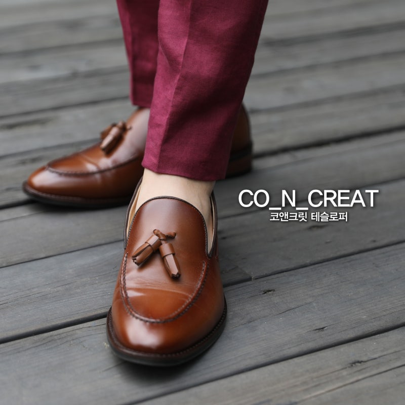 사이즈는 245~285까지 5단위로 만나보실 수 있습니다. 발등이 높거나 발볼이 넓은 분은 커스텀으로도 주문 제작할 수 있다는 특징도 있습니다. 이 모든 것이 수제화이기 때문에 가능하다는 것입니다! 좀 더 자세한 사항은 카카오플러스 친구나 홈페이지 상담원 채팅창에서 상담 후 진행할 수 있습니다.뒷모습이 꽤 섹시한 느낌이죠!?ㅋㅋ 촬영일에 햇빛이 강렬해서 그런지 고급스러운 광택이 포인트로 딱 좋은 것 같아요. 굽높이는 약 3.5cm로 너무 높지도 않고 너무 낮지도 않고 좋은 높이로 만나보실 수 있어요! 우드 브러쉬라 고급스러움까지!저는 보통 착용한 사이즈의 260사이즈를 착용하였습니다. 나는 발 사이즈가 양쪽이 다른 편이라 크게 발 사이즈에 맞게 착용하고 있습니다. 정사이즈의 260사이즈가 딱 좋았어요!처음엔 약간 타이트한 느낌이 들지만 착용하고 보면 밀착했습니다. 반업을 하고 착용도 하고 보았지만 저에게는 큰 편에 느껴져서… 그렇긴. 이런 로퍼의 경우는 딱 밀착되어 착용하는 것으로 최대-5까지 착용할 수도 있습니다. 나는 정규 사이즈로 추천하고 싶습니다. 볼의 크기, 발등 높이의 차이가 있는 경우가 있으니 충분히 의논해서 결정하는 것도 좋다고 생각합니다!오늘 제가 준비한 리뷰는 여기까지입니다. #30대 로퍼 추천이라고 말씀드렸지만 심플한 디자인의 로퍼이기 때문에 20대는 물론 40~50대 전 연령대 누구나 착용 가능한 제품이라고 생각합니다. 고급스러운 수제화 로퍼를 찾으시는 분들은 CO_N_CREAT를 만나보세요! 좀 더 자세한 내용은 하단 링크에서 보실 수 있습니다. 즐거운 하루 되세요! [CO_N_CREAT홈페이지]